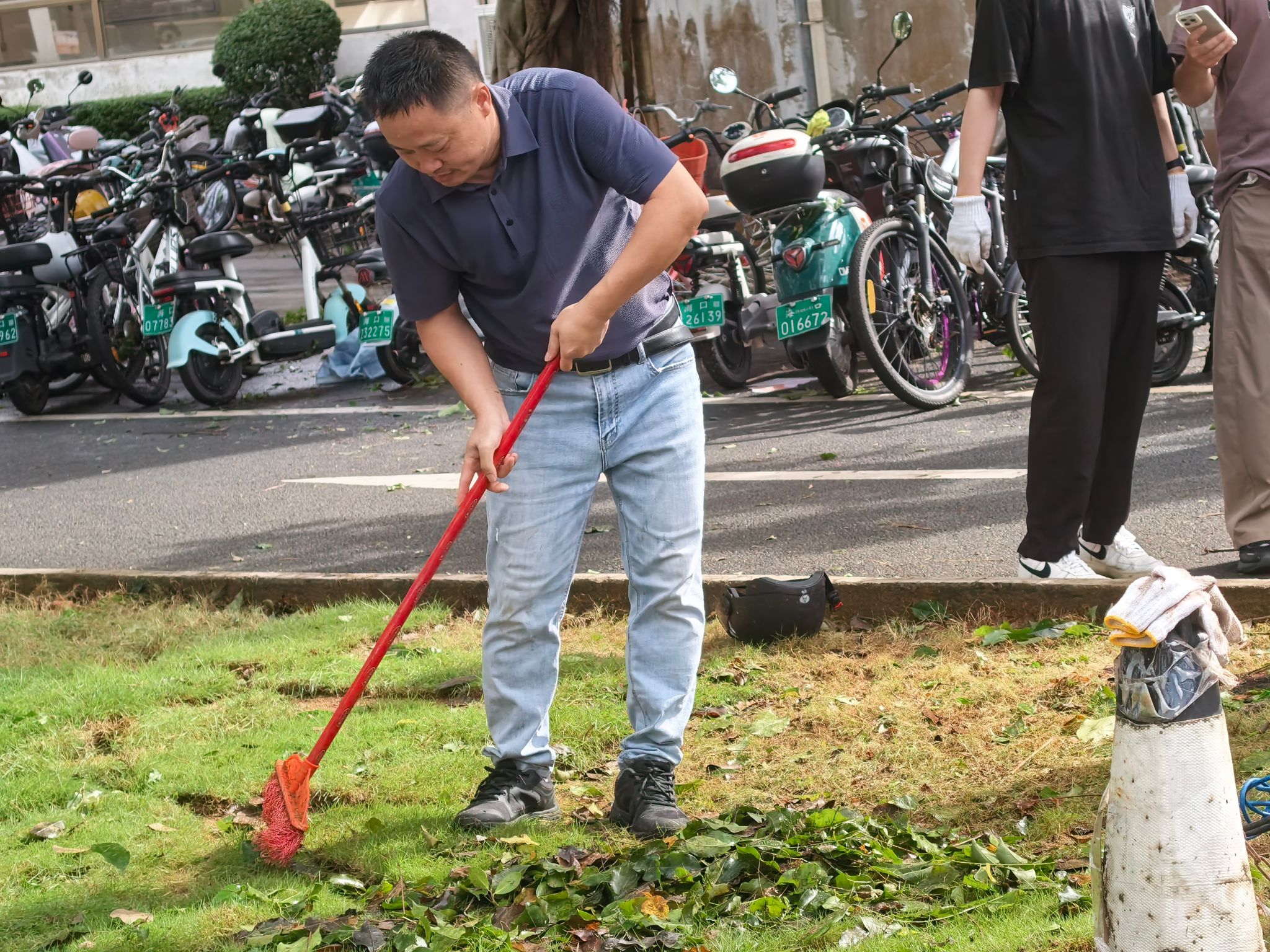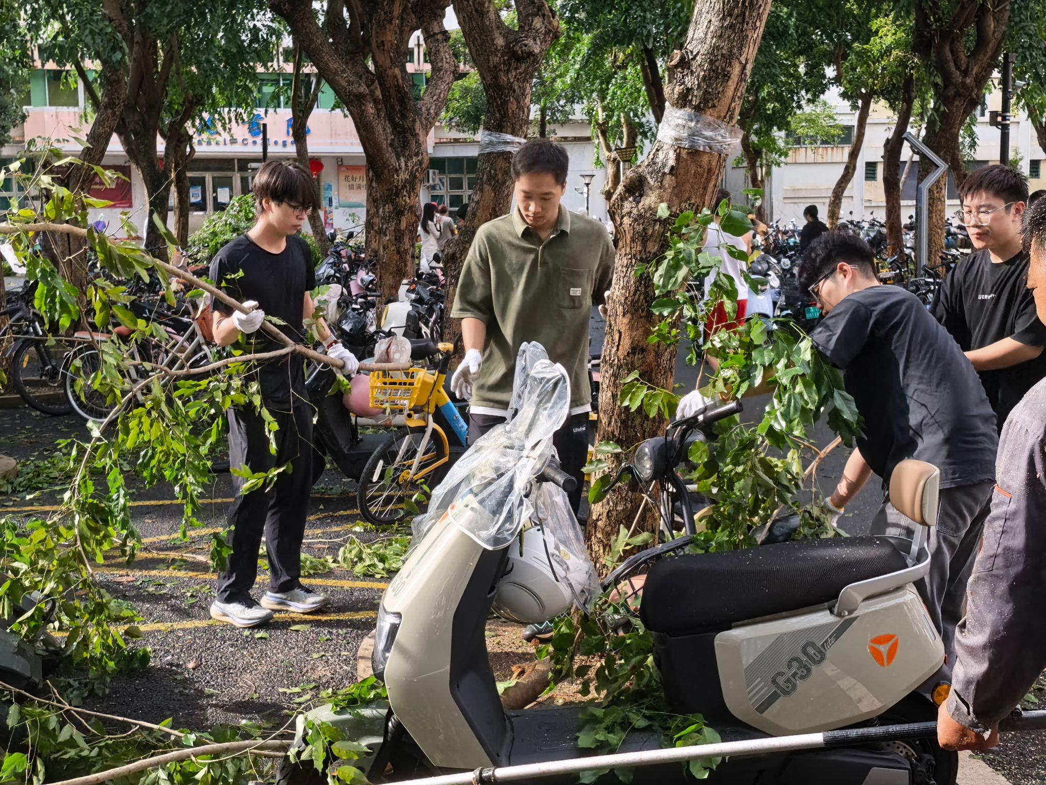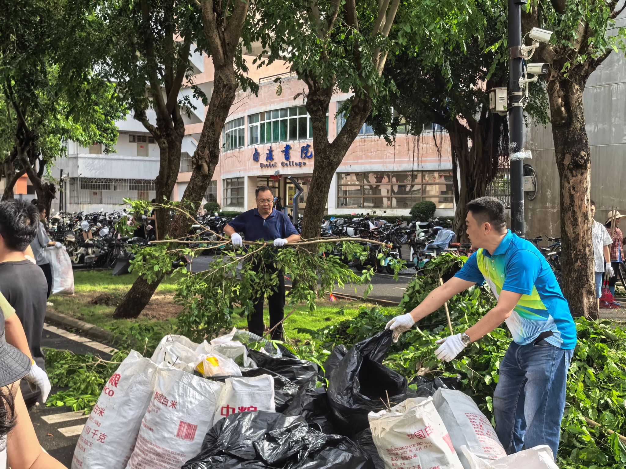 在灾后重建的关键时刻,校党委常务副书记张继友亲临一线、靠前指挥,率领学生工作部、后勤保障部等相关负责人,迅速投入到Bwin必赢的清障工作中。在领导的实地指导与各部门高效协同下,仅数小时,Bwin必赢前的道路便恢复畅通,校园秩序也从台风后的凌乱重归宁静有序,有力彰显了灾后重建的“南海速度”与担当。